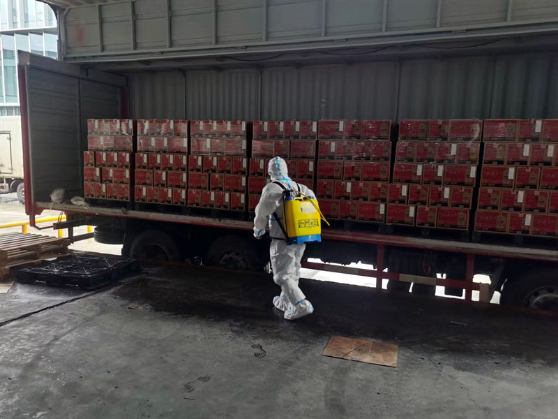 到达仓库卸货平台后,再进行货物消杀,等待30分钟卸货